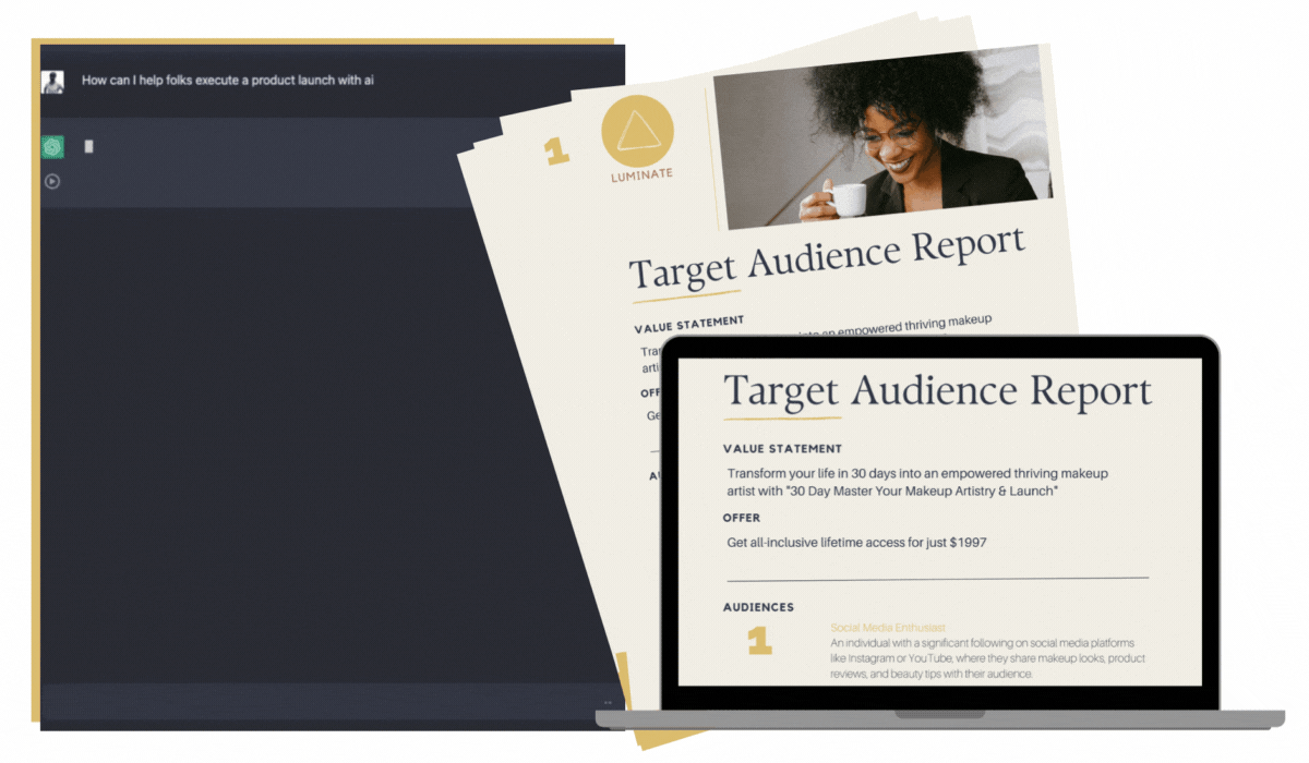 WHO WILL BUY: Identify multiple audiences who'd make great customers for your offer. Zero in on them so you can thoroughly understand who they are, why they make the decisions they do, and where they spend their time. Do all of it much more rapidly and much more thoroughly using AI.